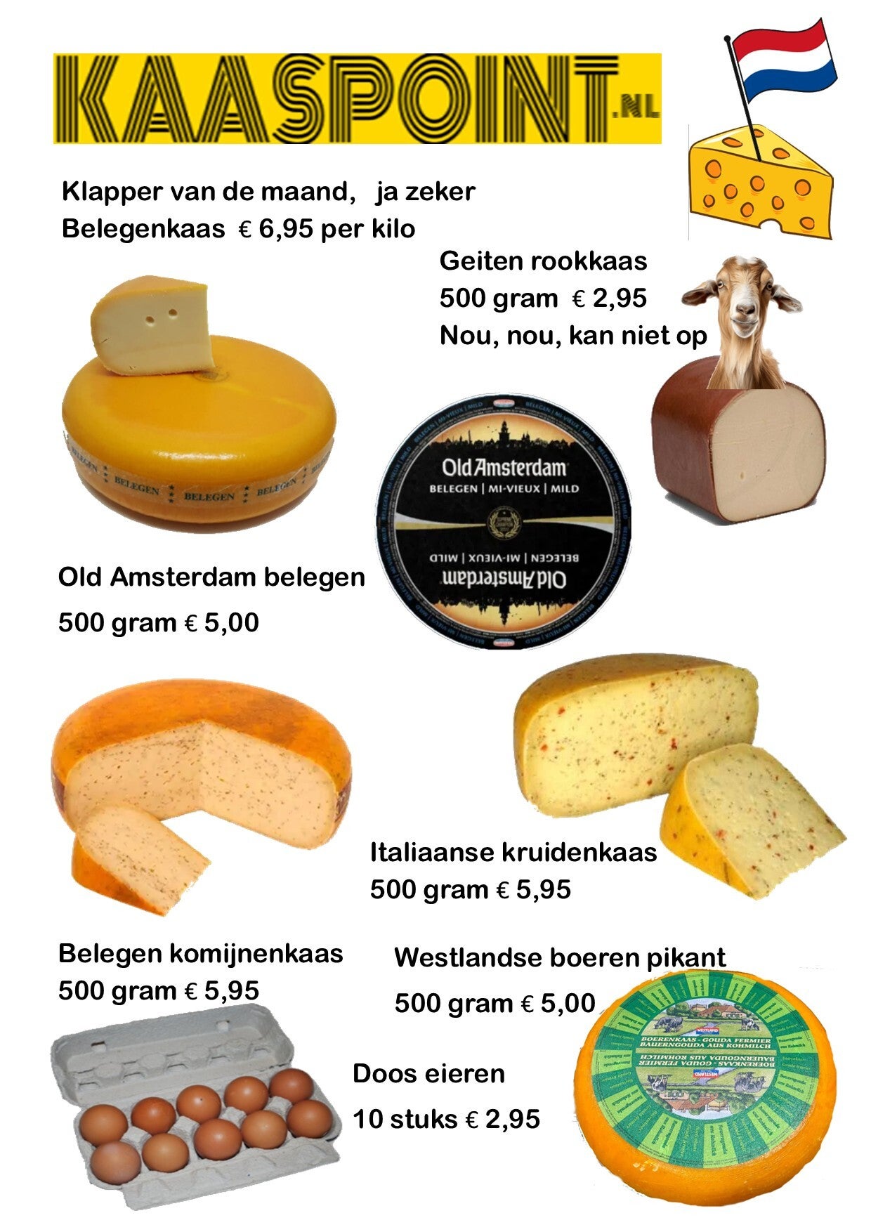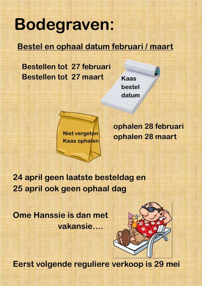 Voor de locatie BODEGRAVEN is het ook mogelijk om door de weeks kaas te bestellen en dan af te halen de volgende dag tussen 10.00 uur en 14.00 uur wel 1 dag van tevoren bestellen...... Bestellen via de webwinkel gelieve